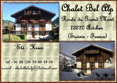 Tél : 00 33 (0)4 79 38 19 09 E-mail : chaletbelalp@hotmail.com